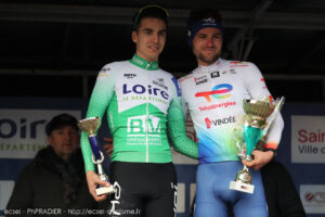 Après un duel à couteau tiré avec Damien Beton, récent champion régional Auvergne Rhône-Alpes, Sandy Dujardin réussissait à faire la différence à quelques centaines de mètres de l’arrivée, faisant ainsi parler la puissance du coureur de Tour de France qu’il est depuis Juillet dernier.