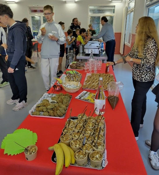 L’intervention sur les principes de la nutrition sportive ont pour but de permettre aux jeunes de savoir se composer un repas équilibré à partir des produits proposés au buffet du midi ou à la collation de l’après-midi.