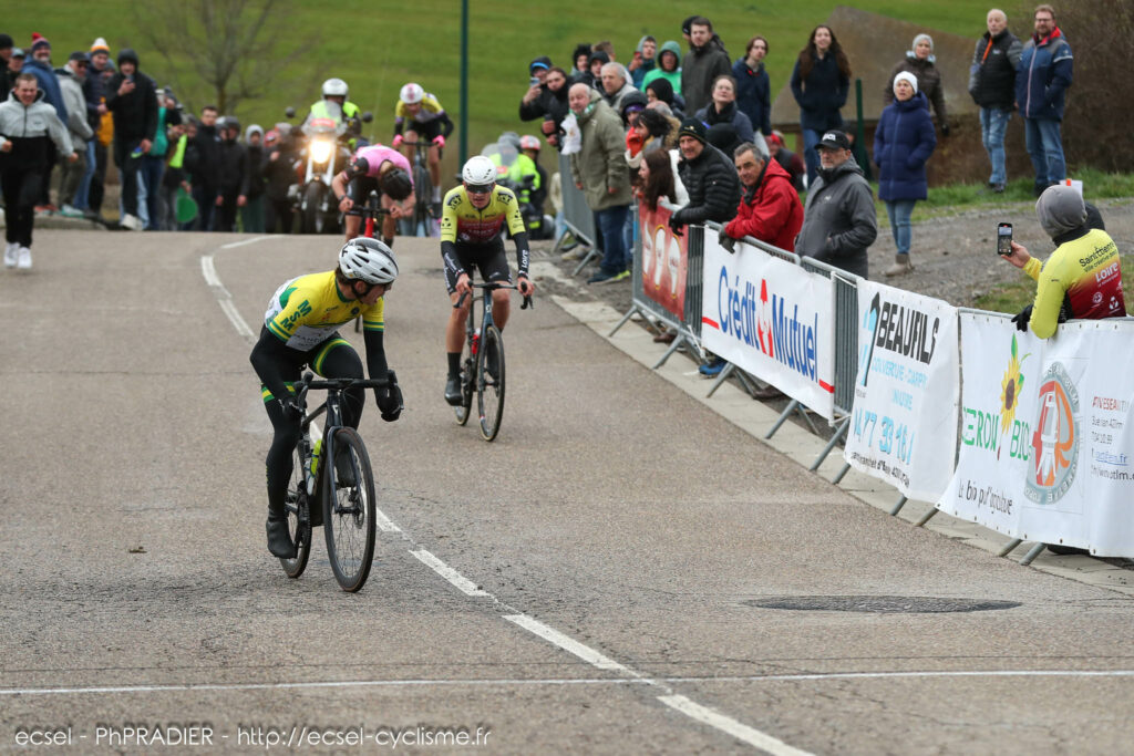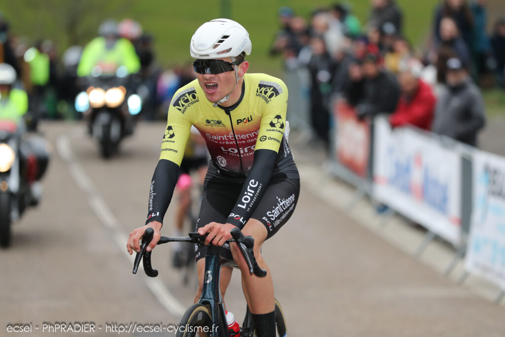 De là, est sorti un peloton de 45 coureurs et on a continué à durcir pour être en supériorité numérique et isoler les trois favoris que j’avais identifié comme le canadien Maxime Bourassa de Besançon, Valentin Martinet de La Motte Servollex et Gustave Blanc de JEGG DJR Academy (reserve de la Jumbo Visma), car à la pédale sur une montée sèche, on sait que nos coureurs ne peuvent rivaliser avec eux. Ca a parfaitement fonctionné, car les deux premiers ont été piégés et Blanc a du faire beaucoup d’efforts et il les a payés dans le dernier tour. J’avais aussi insisté auprès de nos coureurs de bien s’habiller et je pense que certains coureurs l’ont payé également avec le froid et le vent. »