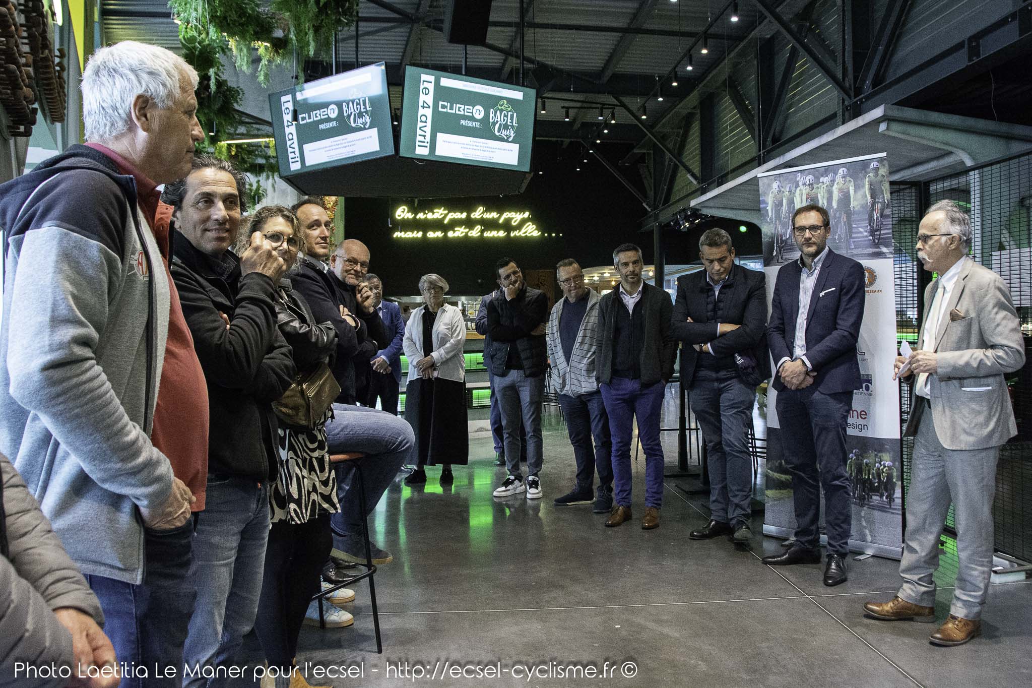 La soirée se termina après la traditionnelle photo de famille, sur la promesse de se retrouver prochainement pour partager une sortie à vélo du club des partenaires et par la remise d’un poster dédicacé de l’équipe élite et d’invitations à partager une épreuve de haut-niveau aux côtés d’un directeur sportif de l’ECSEL.