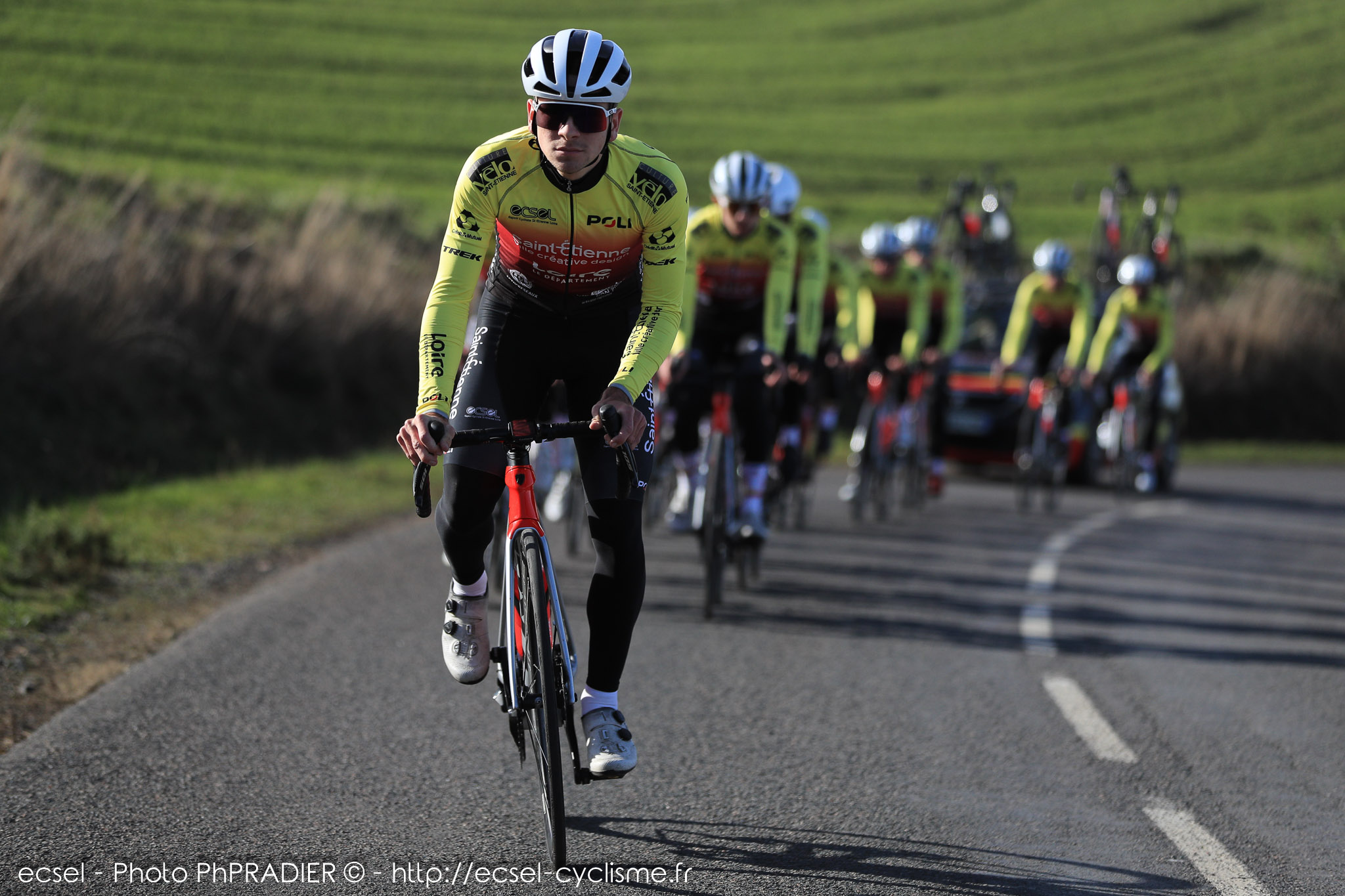 Il se définit comme un puncheur (1m72 pour 68 kg) : j’aime bien quand ça roule fort toute la journée ». La saison 2025 a été bonne aussi, revenu proche de chez lui, à l’UC Pélussin avec un triplé maison à Pélu et une victoire à Longes, devant Rémi Arsac, aujourd’hui revenu à l’ECSEL et professionnel dans la Conti de Décathlon CMA CGM Team. 6 entrainements par semaine, une alimentation équilibrée (mais non pesée !), pas d’obsession pour les datas (« en course, mon compteur me sert plus à regarder le parcours que les données ») et 20 000 km par an, voilà pour finir le portrait du coureur, côté pile.