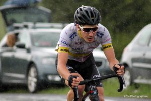 Courir avec les professionnels, à même pas 20 ans, est en soi déjà une belle performance. Pour la première fois de sa jeune carrière, Maxime a été appelé en équipe de France espoirs pour courir samedi le Grand Prix de Plumlelec et dimanche les Boucles de l’Aulne, courses comptant pour la coupe de France pro. S’il termine samedi 77e à 3 minutes du vainqueur André Pasqualon (Wanty Groupe Gobert) et dimanche 75e à 10’39 de Kevin Le Cunff (Saint Michel Auber 93), Maxime a particulièrement apprécié cette première expérience. » C’est un honneur de porter ce maillot tricolore. Ca fait bizarre de se retrouver aux côtés de coureurs qui vont faire le prochain Tour de France. Ca donne envi de revenir. Pour cela il faut continuer à faire de bonnes performances en club. Ces deux courses vont me permettre de passer un cap. Je n’oublie pas qu’il y a juste un an je sortais de 2e catégorie « . Lucide, Maxime Jarnet sait aussi que le mois de juin qui se présente pourrait être décisif dans sa progression avec le championnat régional, le tour du Beaujolais, le Sportbreizh et les championnats de France.