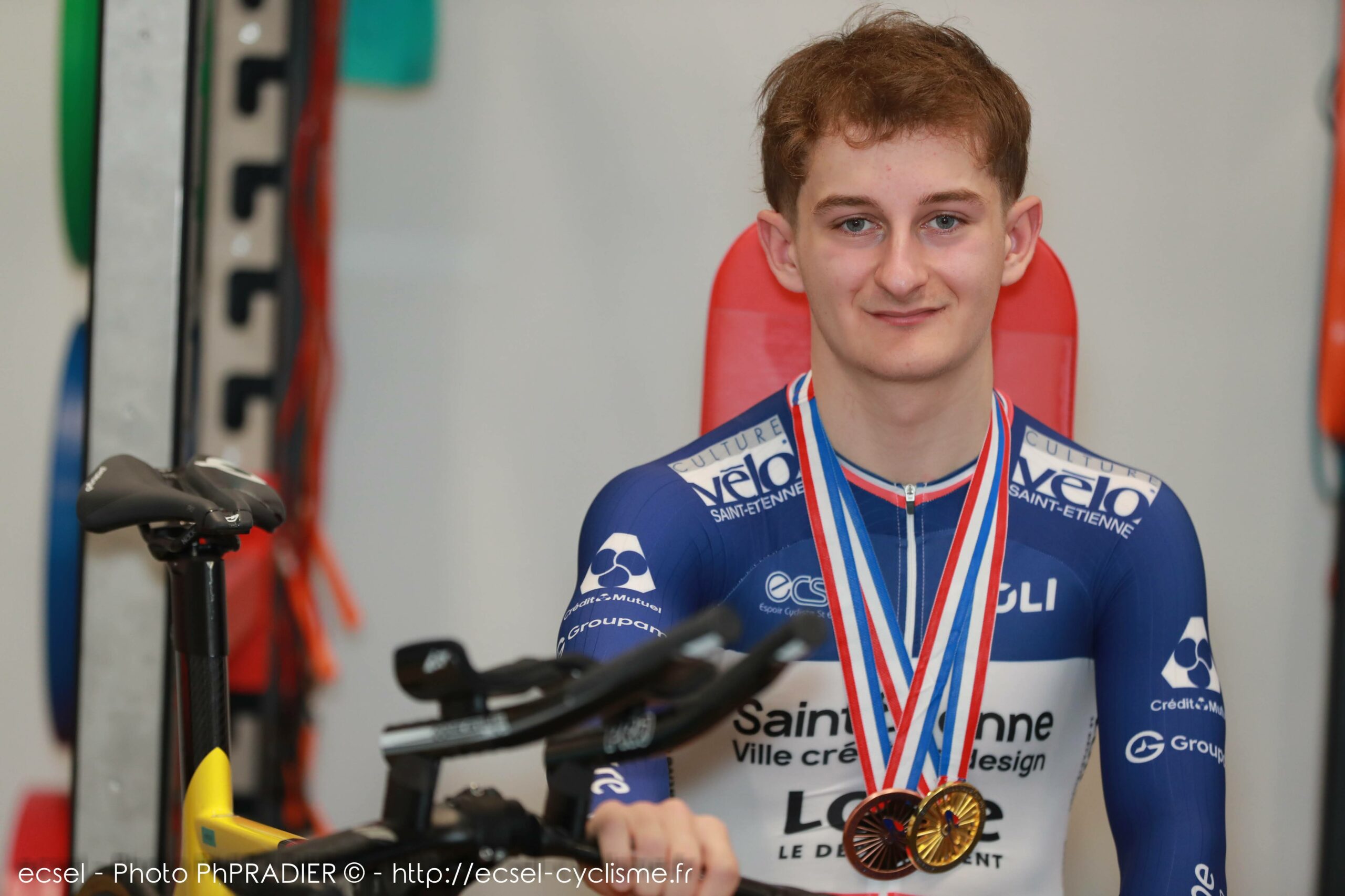 De super fort, il fallait devenir un cador, alors le gamin part, tout en restant licencié à l’ECSEL, au Pôle France à Bourges en 2025. Installations au top, le matériel qu’il faut. « C’était un peu dur de partir mais je ne regrette rien ». Il faut dire que Nathan a envoyé du lourd pour cette dernière année en U 19 : trois victoires et une 7e place aux championnats régionaux sous les couleurs stéphanoises sur route et des gagnes à la pelle sur piste. Parmi les principales, le titre de champion de France Elite en poursuite par équipe ou la coupe de France à Foix où le Stéphanois s’impose en poursuite par équipe, sur le tempo, le scratch et à l’américaine. Bref, sur toutes les épreuves. La médaille d’argent aux championnats d’Europe aurait pu être l’apogée de la saison. Même pas.